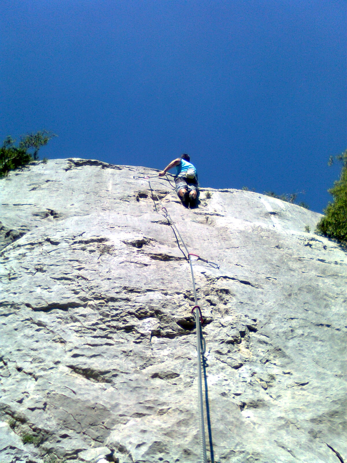 -La vía 10: la he encontrado bastante disfrutona, con una subida en flanqueo a la izquierda, y un trozo vertical. La reunión esta en mal estado, así que sigo flaqueando y me voy a la de la izquierda.